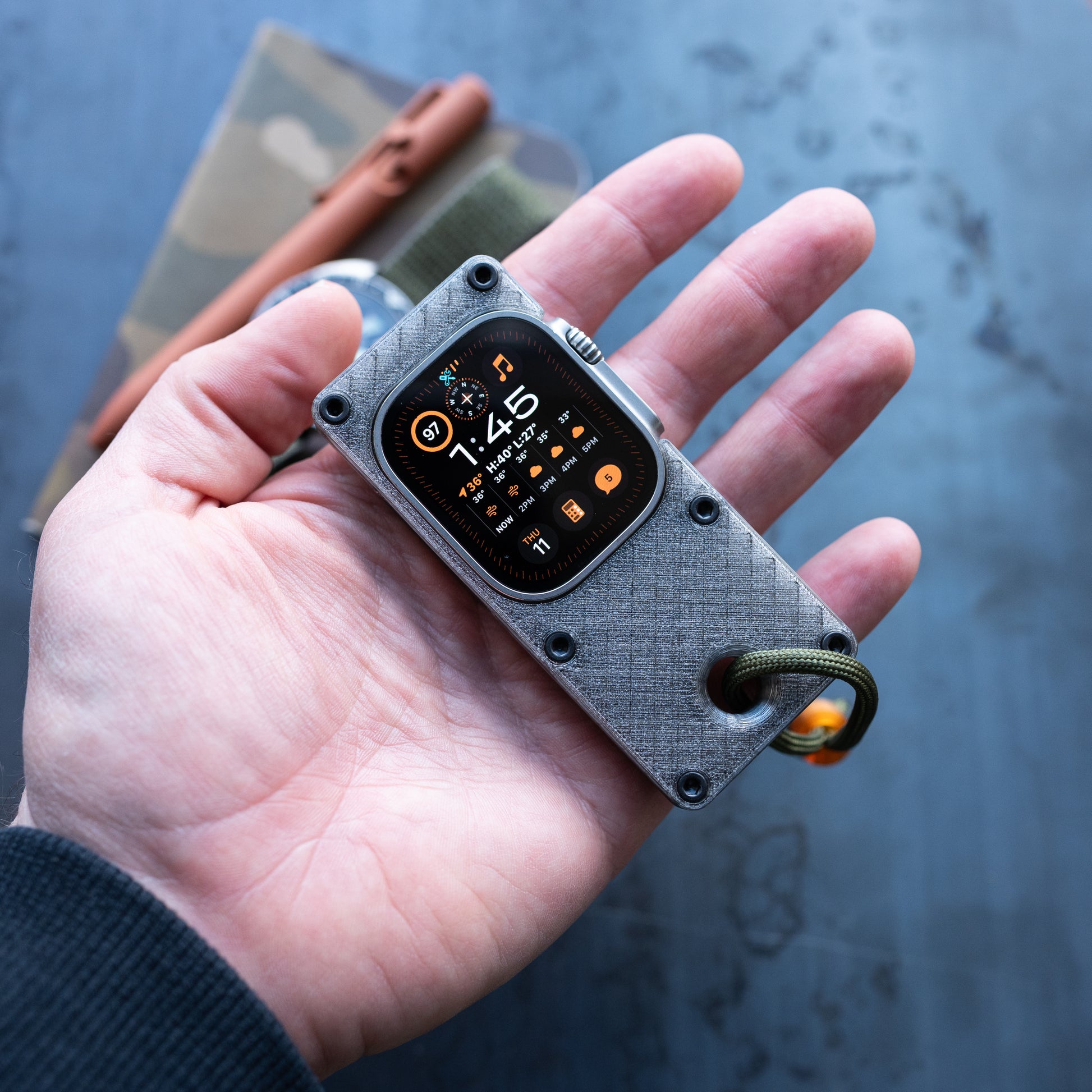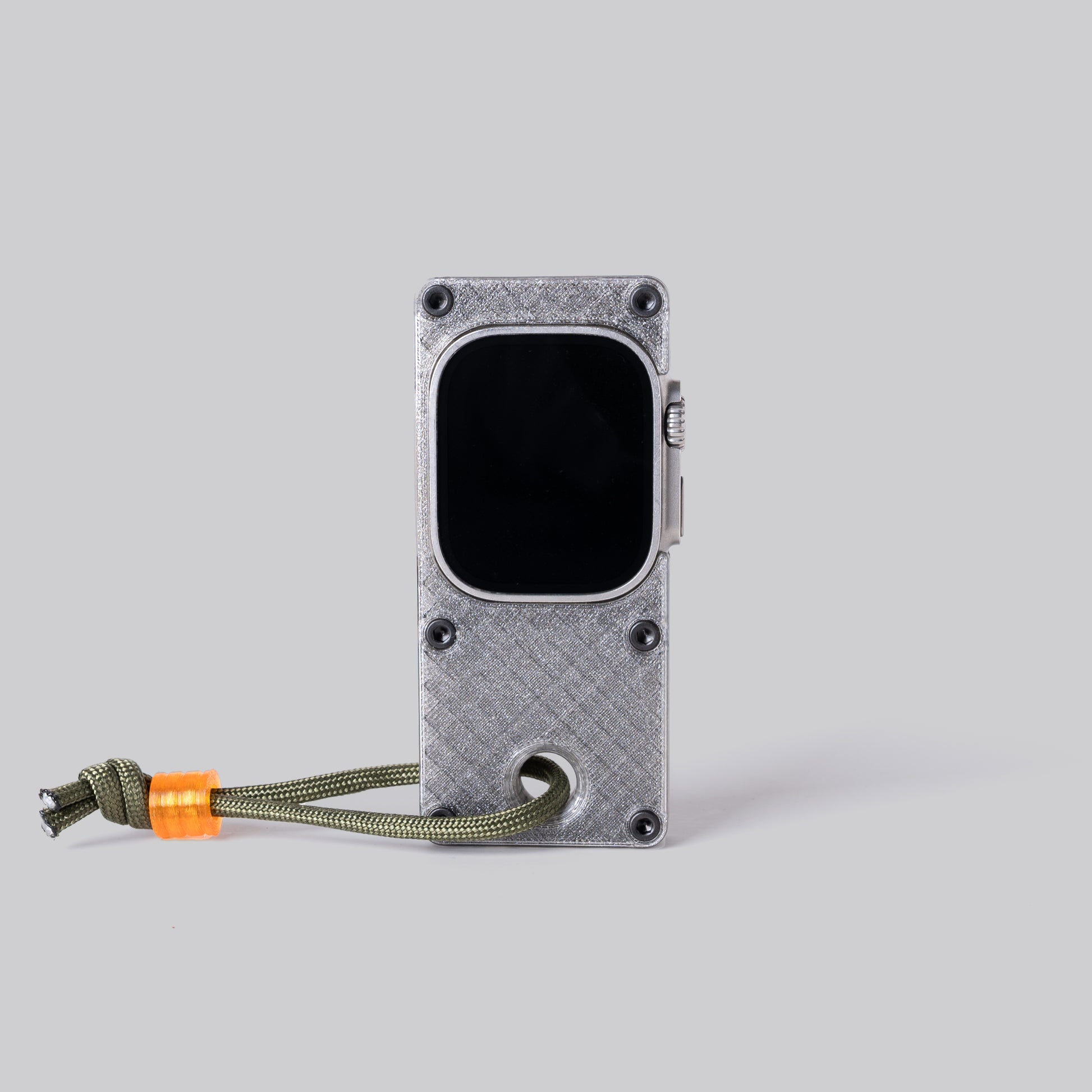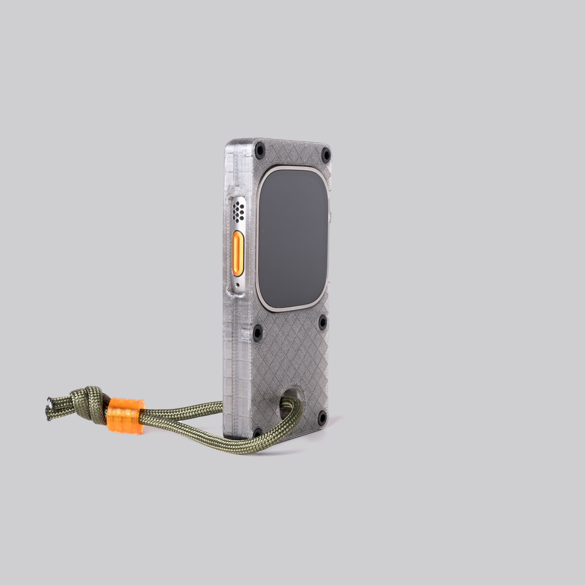 maybe sometimes a phone is too much and you just need to get by with the essentials. this case makes your Apple Watch Ultra more comfortable to hold in hand and use like a small smart device, while freeing up your wrist for you know, a real watch.