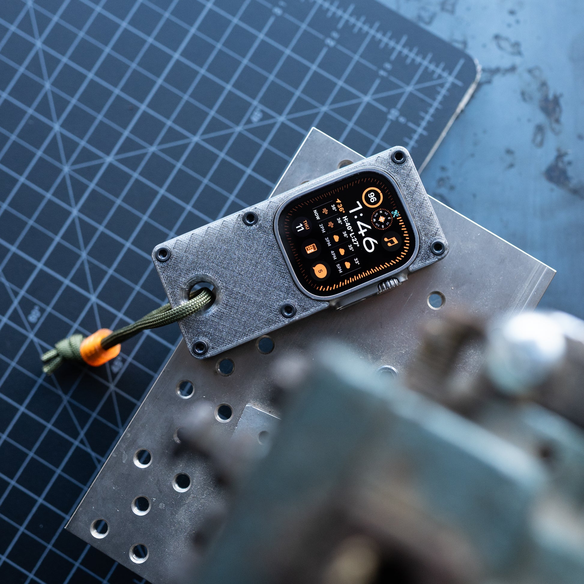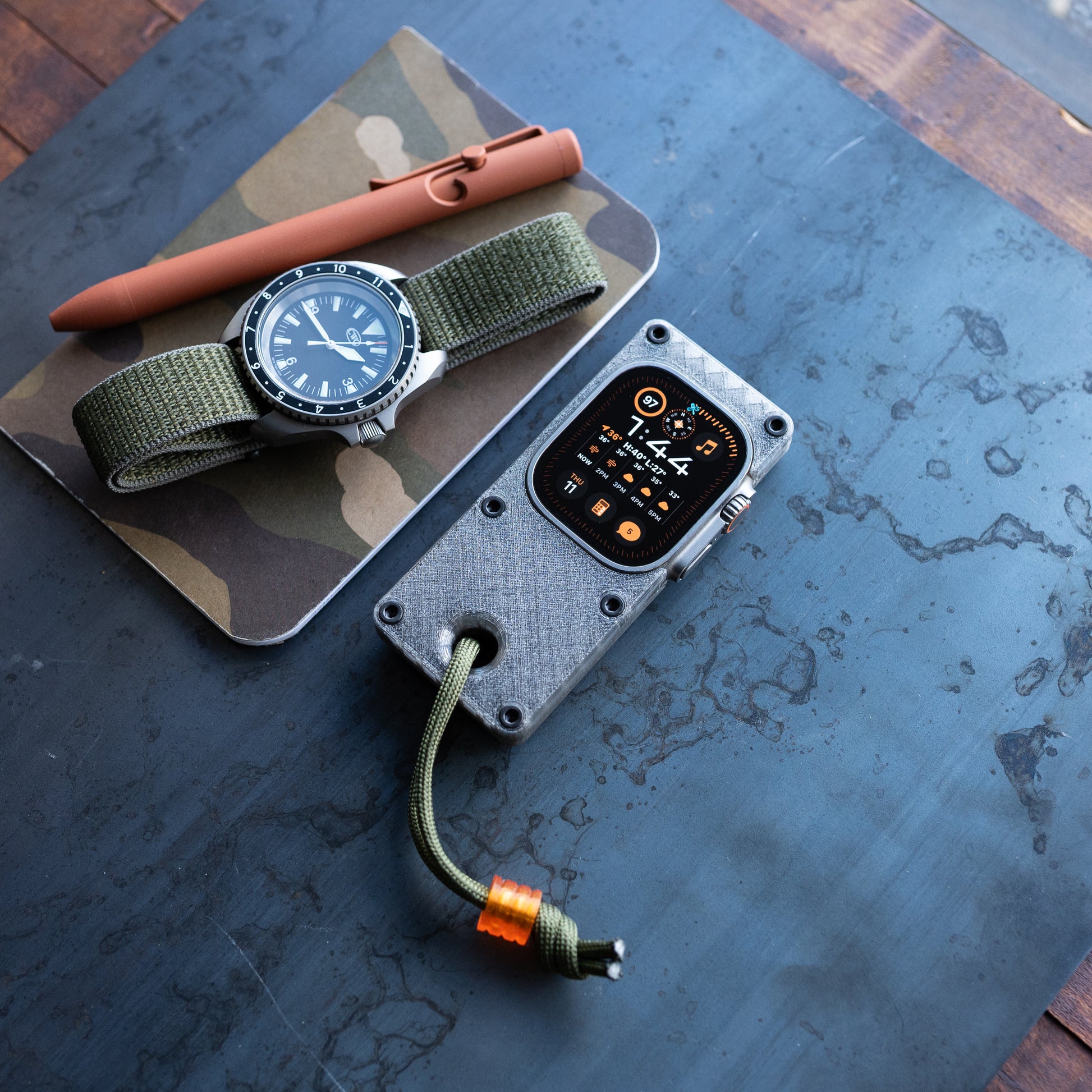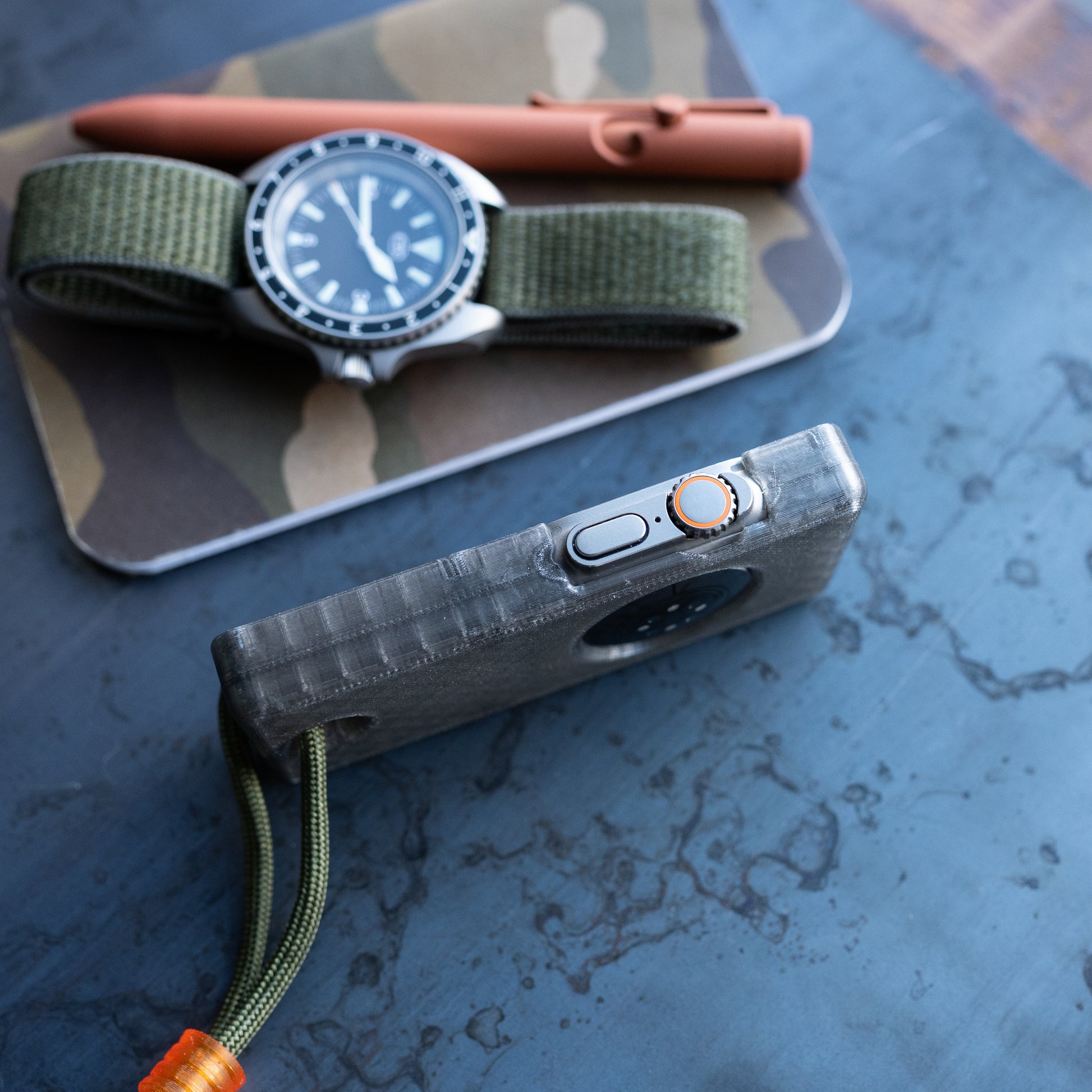 maybe sometimes a phone is too much and you just need to get by with the essentials. this case makes your Apple Watch Ultra more comfortable to hold in hand and use like a small smart device, while freeing up your wrist for you know, a real watch.